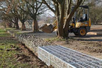 Erneuerung des Gabionenbands am Alten Flugplatz Frankfurt, Copyright: Stadt Frankfurt am Main, Foto: Stefan Cop