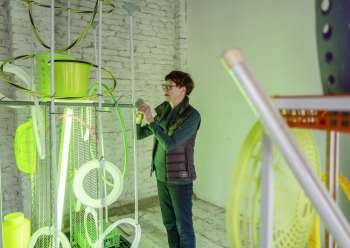 Ein Raum von nur sechs Quadratmetern beherbergt ein Jahr lang eine futuristische Raumstation: Hier, im Lichthof zwischen Rententurm und Saalhof im Historischen Museum Frankfurt (HMF), hat am Donnerstag, 16. April, die Kunst-Intervention der Frankfurter Künstlerin Heide Weidele eröffnet.