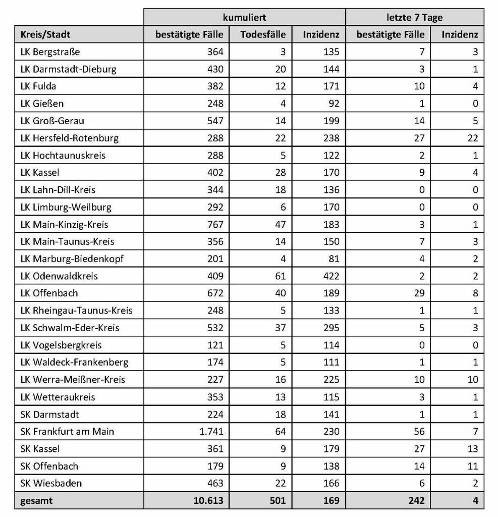 ### Nachrichten aus Frankfurt ### ### Nachrichten Frankfurt und Umgebung ### In Hessen wurde am Dienstag kein weiterer Todesfall im Zusammenhang mit dem Coronavirus gemeldet.