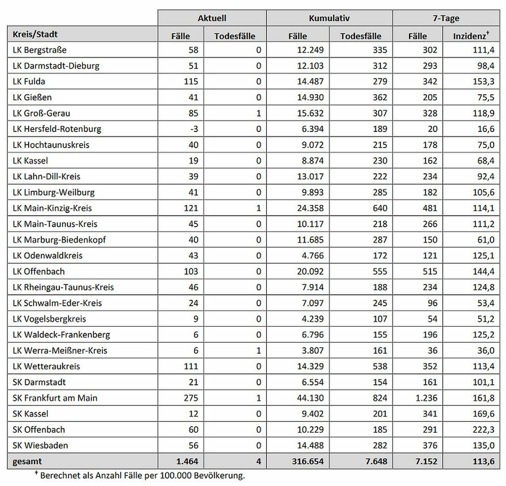### Nachrichten aus Frankfurt ### ### Nachrichten Frankfurt und Umgebung ### In Hessen wurden am Mittwoch 1.464 neue Coronavirus-Infektionen registriert.