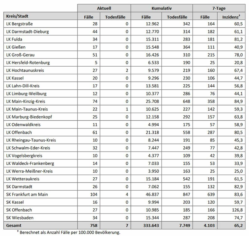 ### Nachrichten aus Frankfurt ### ### Nachrichten Frankfurt und Umgebung ### Am Freitag wurden in Hessen 758 neue Coronavirus-Fälle registriert.