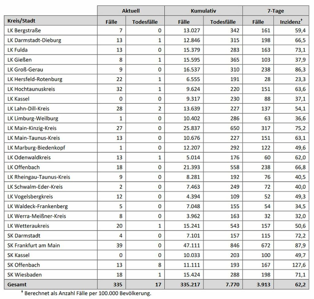 ### Nachrichten aus Frankfurt ### ### Nachrichten Frankfurt und Umgebung ### In Hessen wurden am Dienstag 335 neue Coronavirus-Infektionen registriert.