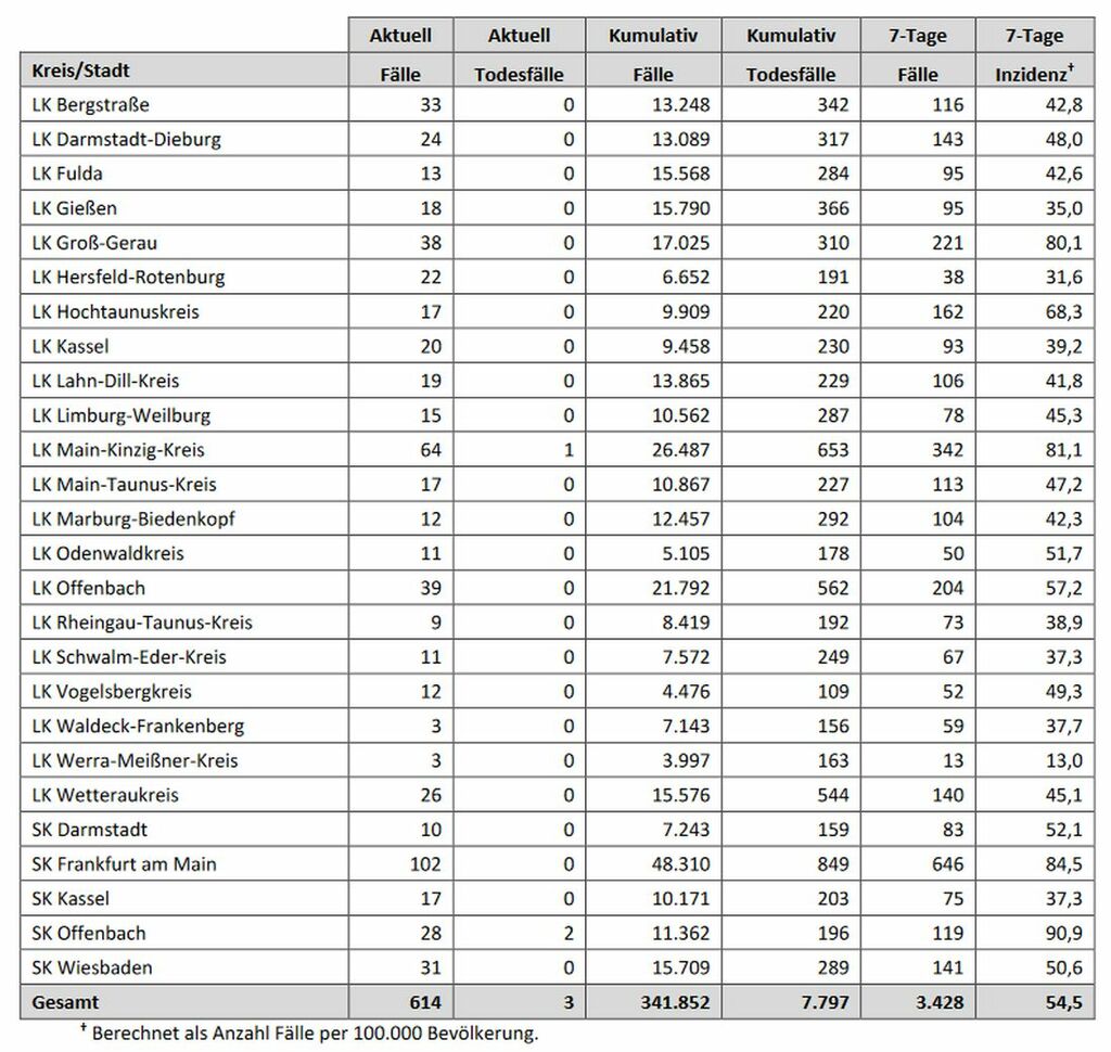 ### Nachrichten aus Frankfurt ### ### Nachrichten Frankfurt und Umgebung ### In Hessen wurden am Samstag 614 neue Coronavirus-Infektionen gemeldet.