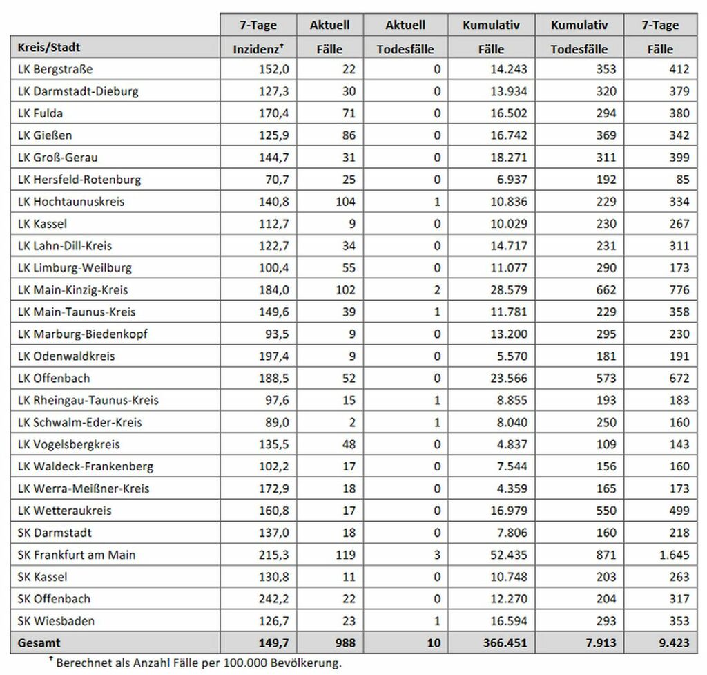 ### Nachrichten aus Frankfurt ### ### Nachrichten Frankfurt und Umgebung ### In Hessen wurden am Dienstag 988 neue Coronavirus-Infektionen registriert.