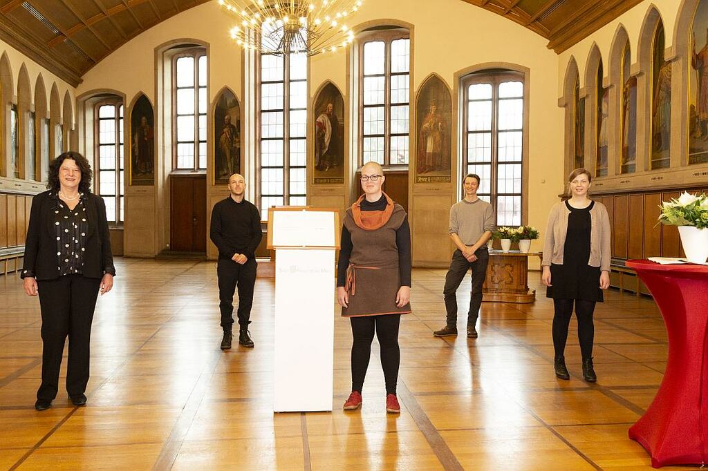 Foto: Die Preisträgerin Junge Akademie Frankfurt mit Laudator Stephan Siegler.