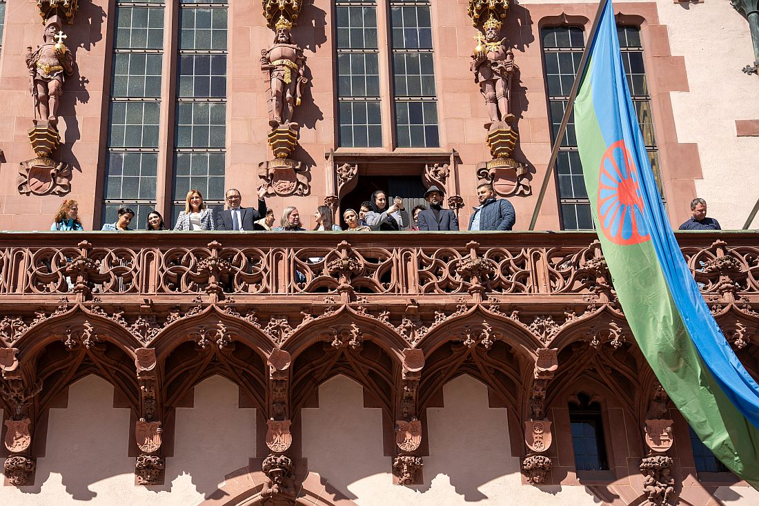 Frankfurt setzt Zeichen gegen Antiziganismus: Roma-Flagge am Römer gehisst