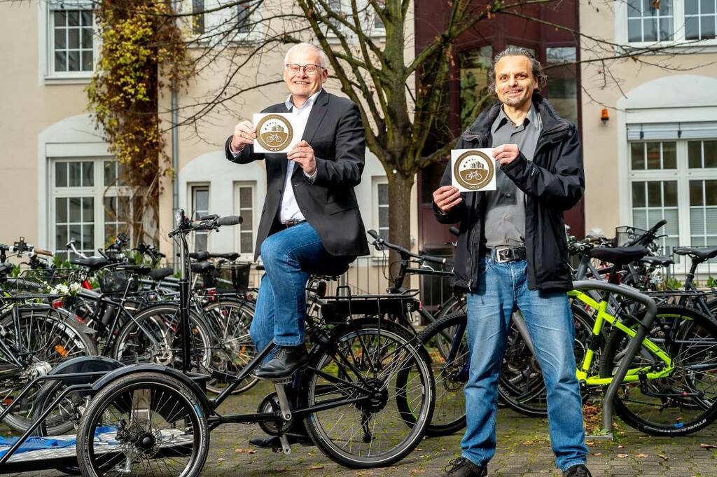 Foto: Peter Dommermuth, Amtsleiter des Umweltamtes, und Torsten Willner vom ADFC bei der Zertifikats-Übergabe. Foto: Umweltamts-Leiter Dommermuth und Torsten Willner vom ADFC bei der Zertifikats-Übergabe. Fotos: ADFC/Umweltamt