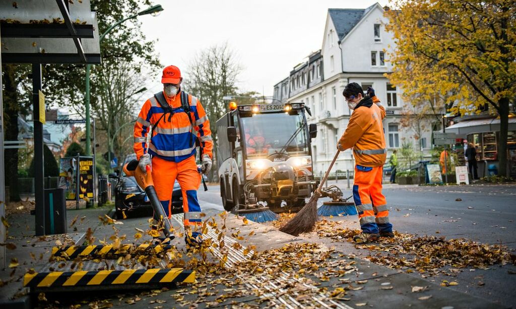 FES ist in jeder Straße mindestens einmal pro Woche, oft auf häufiger. Bei der Bewältigung der Laubmassen helfen neben Besen und Schaufeln auch acht Groß- und 46 Kleinkehrmaschinen sowie 40 geräuscharme und emissionsfreie Elektro-Laubbläser, die von FES bereits seit 2012 eingesetzt werden.