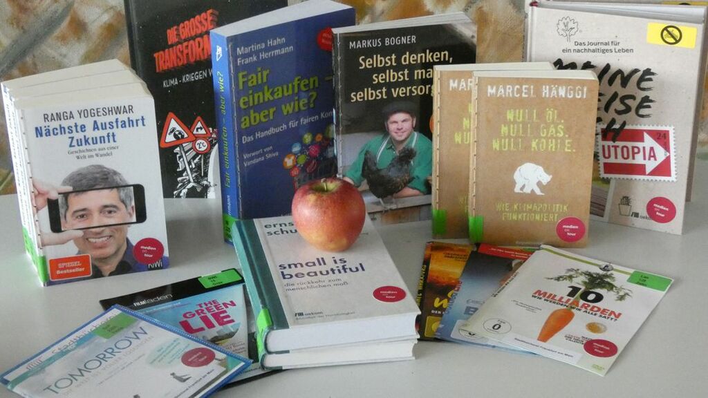 Das Energiereferat hat auf Basis einer Literaturliste, welche die hessischen Klimaschutzmanager entwickelt haben, siebzehn Titel als Ergänzung für das bestehende Angebot vorgeschlagen. Darunter ist beispielsweise ein Ratgeber-Handbuch für fairen Konsum oder ein Erfahrungsbericht über Selbstversorgung. Neun der siebzehn Medien sind Filme, vorwiegend Dokumentationen, die zum ressourcenschonenden Umgang mit Rohstoffen sensibilisieren und anregen.