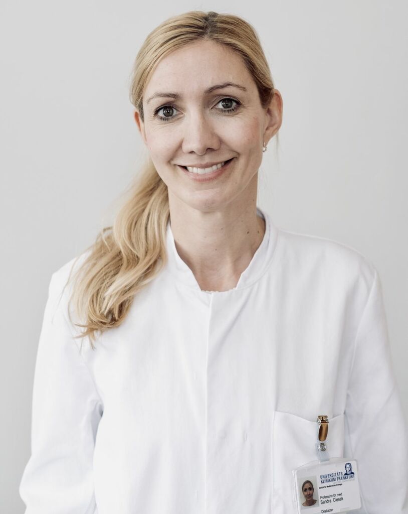 Sandra Ciesek, Jahrgang 1978, ist Direktorin des Instituts für Medizinische Virologie am Universitätsklinikum Frankfurt sowie Professorin für Medizinische Virologie an der Goethe-Universität. Schwerpunkte ihrer Forschung sind die Suche nach neuen Therapieformen für Hepatitis C und, in den vergangenen Monaten, die Erforschung von Medikamenten gegen COVID-19. Ciesek hat in Göttingen und Hannover Medizin studiert und sich schon in ihrer Dissertation auf die Erforschung der Hepatitis-C-Infektion fokussiert. Die Arbeit wurde mehrfach ausgezeichnet. 2016 wurde sie als Professorin für Virologie an die Medizinische Fakultät der Universität Duisburg-Essen berufen. Seit 2019 arbeitet sie an der Goethe-Universität und am Universitätsklinikum Frankfurt, wo sie seit 2020 maßgeblich an der Forschung zu SARS-CoV-2 beteiligt ist. So konnte sie mit ihrem Team nachweisen, dass auch symptomfreie Personen Träger und somit Überträger des Virus sein können.