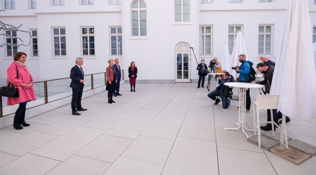 Foto: Impression von der Pressekonferenz. Foto: Mirjam Wenzel. Foto: Mirjam Wenzel, Direktorin JMF, OB Peter Feldmann, Kulturdezernentin Ina Hartwig, Andreas von Schoeler, Vorsitzender des Vereins der Freunde und Förderer des JMF, Ayse Asar, Staatssekretärin im Hessischen Ministerium für Wissenschaft und Kunst. Fotos: Stadt Frankfurt/Andreas Varnhorn
