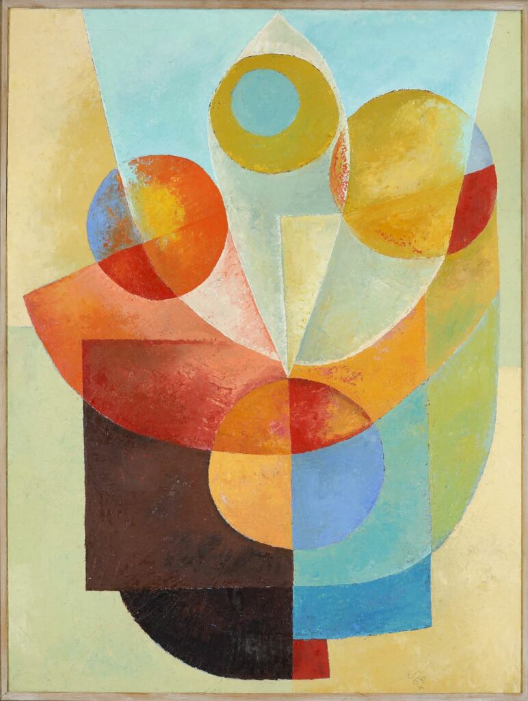 1914 in Weimar geboren, übersiedelte Steneberg 1947 in den Westen, wo er sich politische und geistige Freiheit für sein Schaffen erhoffte. 1951 ließ er sich in Frankfurt nieder und wirkte hier als freier Künstler und Kunsthistoriker. Mit seiner abstrakten Malerei orientierte sich Steneberg an Robert Delaunay und den Bauhauskünstlern, er nutzte Techniken von Lyonel Feininger – und schuf einen eigenen, faszinierenden Stil, mit leuchtenden Farben und einem Gegen- und Nebeneinander von unterschiedlichen Elementen.