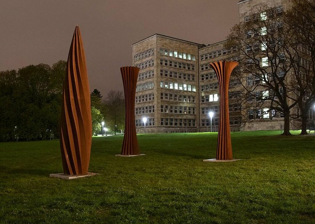 Ab dem 15. Mai präsentieren die Goethe-Universität und das Frankfurter Ausstellungshaus DIE GALERIE als „Gegenmaßnahme“ eine außergewöhnliche Schau von 18 Cortenstahl-Großskulpturen des Bildhauers Herbert Mehler – auf dem weitläufigen Parkgelände des Campus Westend. Zeit für Freiluft-Kunstgenuss sollte ausreichend bestehen: Die Skulpturen werden fast ein Jahr lang bis Ende April 2022 auf dem Campus Westend gezeigt.