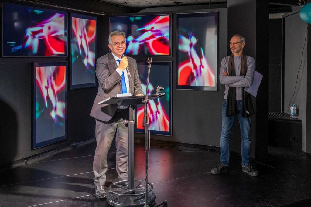 Foto: Oberbürgermeister Peter Feldmann und Alex Azary bei der Vorstellung des Momem. Copyright Stadt Frankfurt am Main, Foto: Andreas Varnhorn