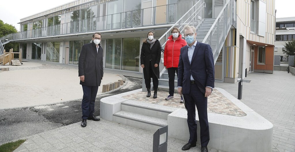 Foto: Außenansicht der neuen Kita. Foto: Innenansicht der neuen Kita. Foto: Jan Schneider, Sigrid Eichler, Alexandra Weizel, Markus Frank. Fotos: Stadt Frankfurt/Maik Reuß