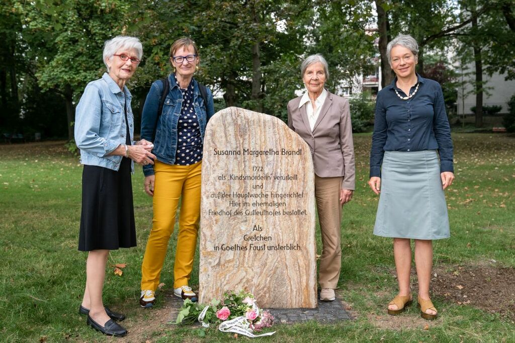 Kulturdezernentin Hartwig sagte: „Mit dem Gedenkstein machen wir nicht nur ein erschütterndes historisches Einzelschicksal sichtbar. Vielmehr hat Susanna Margaretha Brandt geschichtliche Bedeutung für unsere Stadt und darüber hinaus. Zum einen ist es sehr wahrscheinlich, dass sie das Vorbild für die Figur des Gretchen in Goethes Faust ist und seine zentrale Inspiration war. Zum anderen steht das Schicksal Susanna Margaretha Brandts für ein historisches Rechtsverständnis, das kurze Zeit nach ihrer Hinrichtung ein Ende fand. Susanna Margaretha Brandt war eine der letzten Frauen, die in Frankfurt als ,Kindsmörderin‘ hingerichtet wurden.“