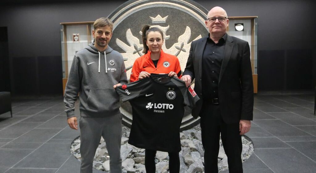 Foto (von links): Trainer Niko Arnautis, Barbara Dunst und Sportdirektor Siegfried Dietrich. Foto: Eintracht Frankfurt