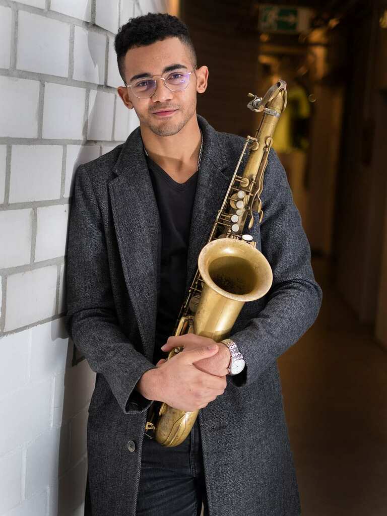 Darius Blair wurde 2002 geboren und hatte von 2011 bis 2016 Alt- und Tenorsaxophon-Unterricht an der Musikschule Bandschmiede in Frankfurt. Im Anschluss daran besuchte er im Hauptfach Saxophon das Pre-College des Dr. Hoch’s Konservatoriums und war von 2018 bis 2020 Jungstudent an der Musikhochschule Mainz. Er erhielt 2018 den ersten Preis beim Solo- und Combowettbewerb der „Jugend jazzt“–Ausscheidung in Hessen sowie 2019 beim Bundeswettbewerb „Jugend jazzt“ unter anderem den Solistenpreis der WDR-Bigband. Darius Blair hat mit verschiedenen Jazzgruppen zahlreiche Auftritte in der Region sowie mit dem Landesjugendorchester Jazz bereits Tourneen im Ausland absolviert. Der Saxophonist möchte das Stipendium nutzen, um die aktuelle Jazzszene in den USA kennenzulernen und am Sommer-Semester des Berklee College of Music in Bosten teilzunehmen.