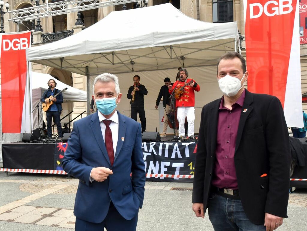Rund 4.000 Menschen zogen laut Angabe von Polizei und Veranstalter am Mittag des 1. Mai auf der Demonstration des Deutschen Gewerkschaftsbundes (DGB) durch Frankfurt. Die Teilnehmerinnen und Teilnehmer trugen dabei Mund-Nasen-Schutz und hielten Abstände ein, die Veranstaltung am Mittag blieb friedlich. Die Route führte von der Hauptwache zum Opernplatz, wo eine Kundgebung stattfand, auf der auch Oberbürgermeister Peter Feldmann sprach.