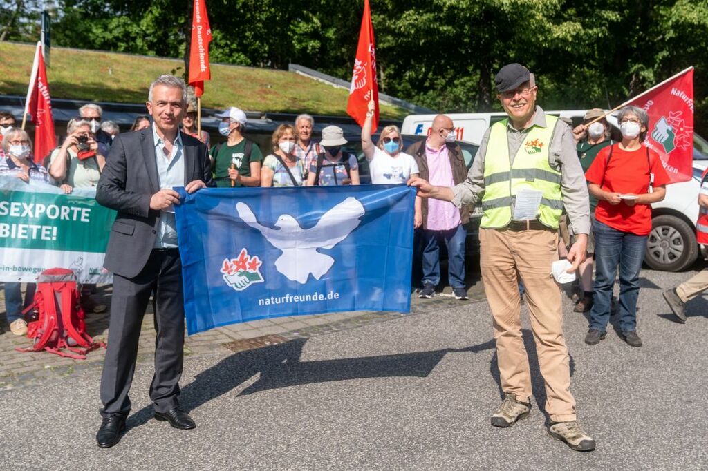 Mit einer Wanderung in 55 Etappen von Hannover bis zum Bodensee wollen die Naturfreunde ein friedenspolitisches Zeichen setzen. Abschnitt 33 führt von Bad Homburg nach Frankfurt. Oberbürgermeister Peter Feldmann hat am Donnerstag, 3. Juni, die für den Frieden wandernden Naturfreunde in Bad Homburg begrüßt und eine gute Wanderung gewünscht. Dabei unterstrich er die politische Relevanz des Themas.