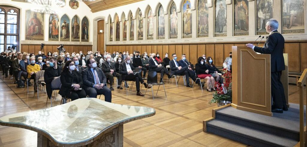 „Das moderne Deutschland ist ohne seine türkischstämmigen Bürger undenkbar“, sagte Oberbürgermeister Feldmann im Kaisersaal. Die insgesamt 876.000 Gastarbeiterinnen und -arbeiter der ersten Generation hätten geholfen, Deutschland nach dem Krieg wiederaufzubauen. Die anfängliche – teilweise berechtigte – Sorge vor Parallelgesellschaften sei einer gemeinschaftlichen Bürgergesellschaft gewichen. So lebe mittlerweile die dritte und vierte Generation der damals eingewanderten Familien in Deutschland.