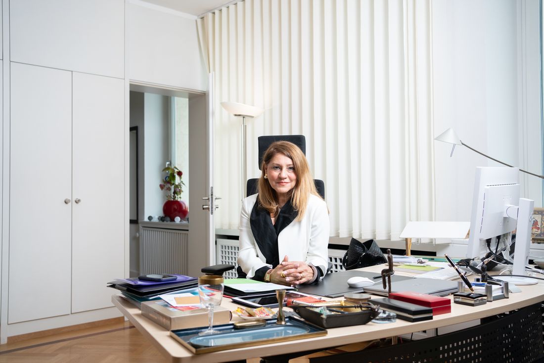 Foto: Bürgermeisterin Nargess Eskandari-Grünberg an ihrem Schreibtisch, Copyright: Stadt Frankfurt am Main, Foto: Ben Kilb