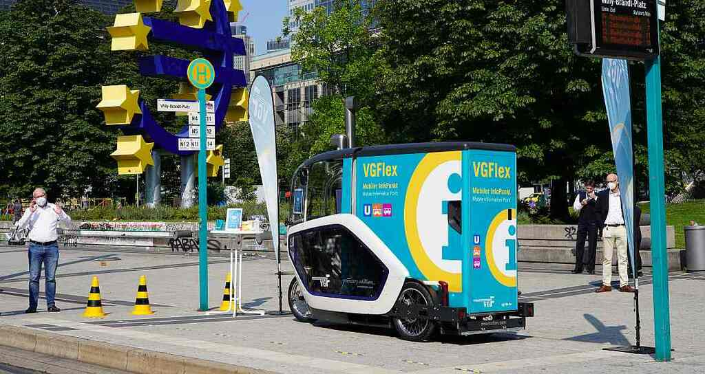 Das Serviceteam kommt mit dem mobilen Info- und Servicepunkt zu den Kunden und kann beispielsweise vor Beginn und während Baumaßnahmen mit entsprechendem Infomaterial über alternative Fahrtrouten informieren. Auch bei nicht geplanten Unterbrechungen kann das Serviceteam dank des flexiblen Lastenfahrrads schnell an Haltestellen sein, die noch nicht über digitale Fahrgastinformation verfügen. Außerdem soll das VGFlex, wie der VGF-InfoBus, an bestimmten Tagen an zentralen Stellen in Frankfurt zu finden sein.