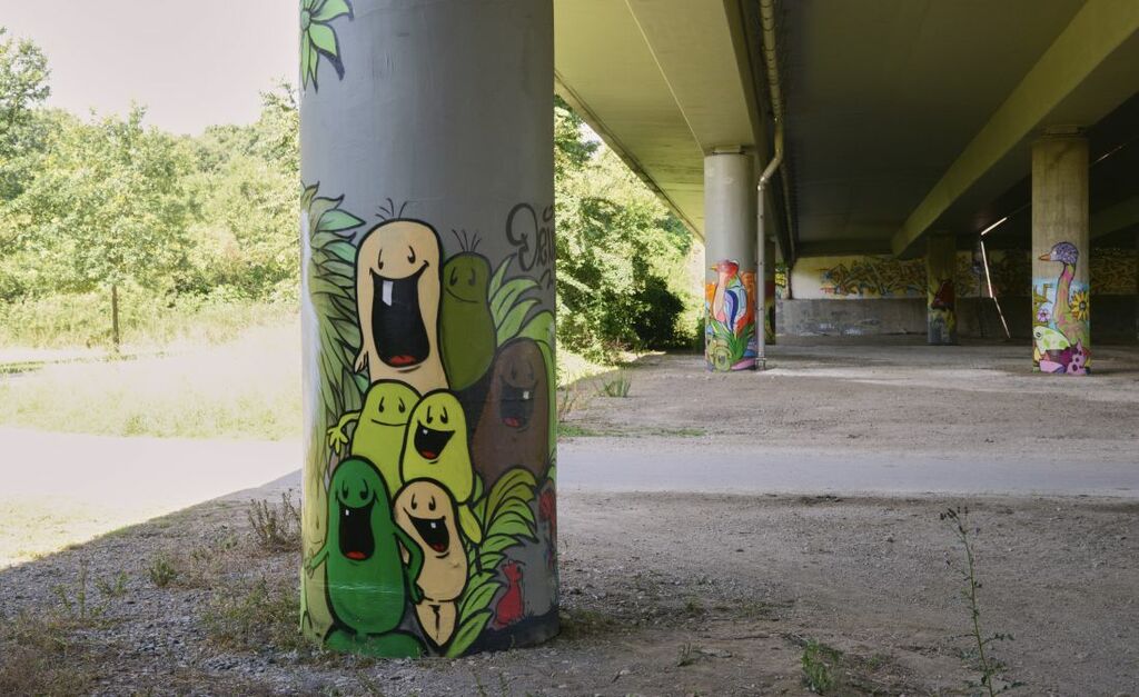 Foto: Eines der Ausflugsziele ist die Graffiti-Galerie im Niddapark unter der A 66, Copyright: Stefan Cop
