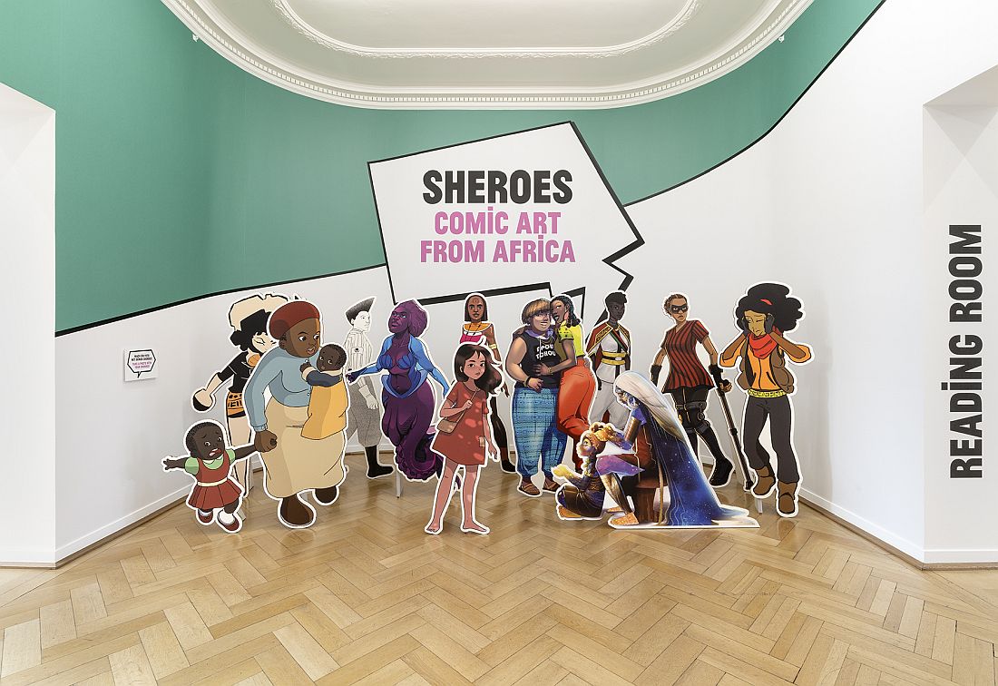 Das Junge Schauspiel Frankfurt bietet eine vielstimmige Performance von Jugendlichen und jungen Erwachsenen in der Ausstellung „Sheroes. Comic Art from Africa" des Weltkulturen Museums am Schaumainkai 29. Die Sheroes inspirieren das Ensemble zu eigenen Nahaufnahmen aktueller Umbrüche: Was nehmen wir mit in eine bessere Zukunft? Was bleibt zurück? Was wäre, wenn wir feststellen, dass die Wirklichkeit wirklich veränderbar ist? Konzept und Regie stammt von Martina Droste und Anina Engelhardt, die Dramaturgie von Stephanie Endter und Leonie Männich.